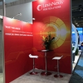 Keeping brand imagery top of mind, stevensE3 developed a design that allowed for private meeting space, yet left visibility such that the space would not appear smaller for having enclosed spaces. Several meeting spaces were incorporated into the relatively small space allowing for multiple conversations to happen simultaneously. Stevens also utilized the maximum allowable 4m in height to create distance branding. The design of the exhibit appeared in a highly professional presentation through the use of linear aluminum construction, clear acrylic paneling, professional furniture, and decorative, yet simple finishes. The raised floor also became a key feature, allowing a separation from the show floor.