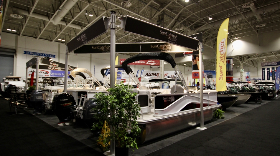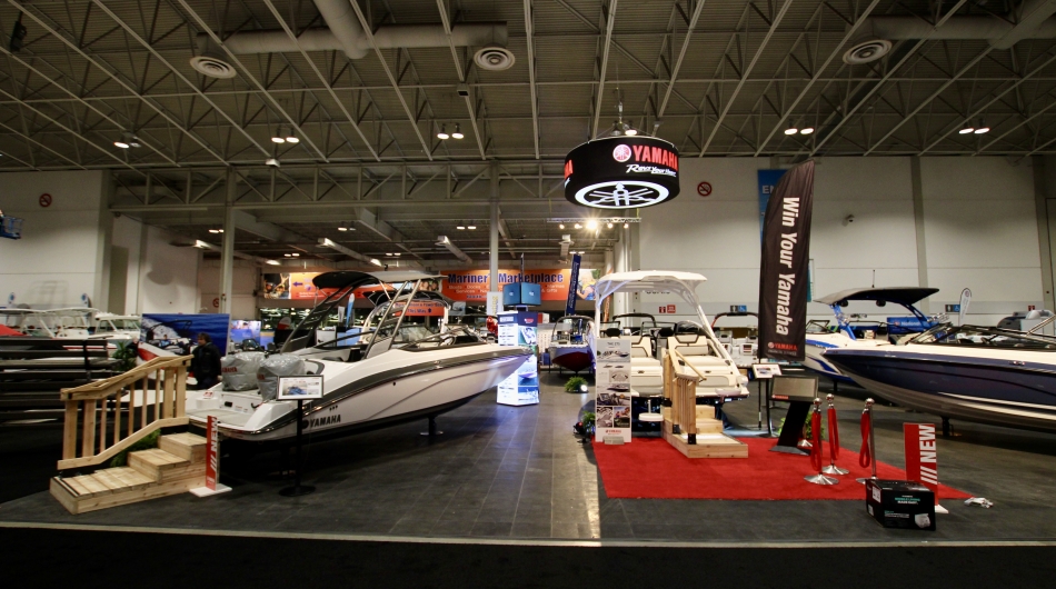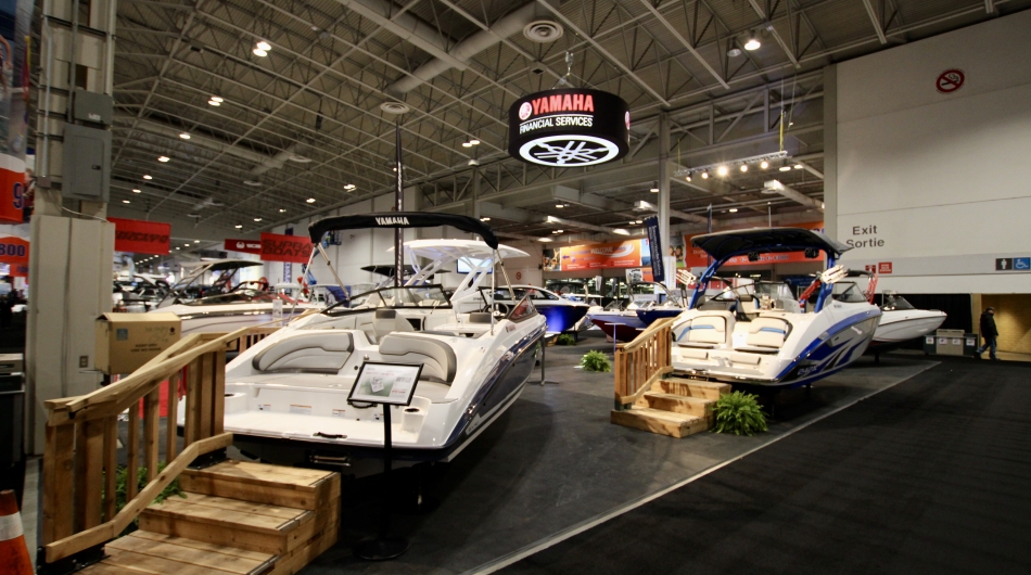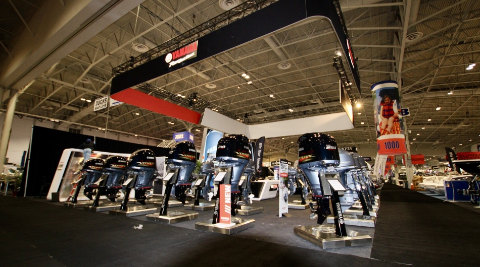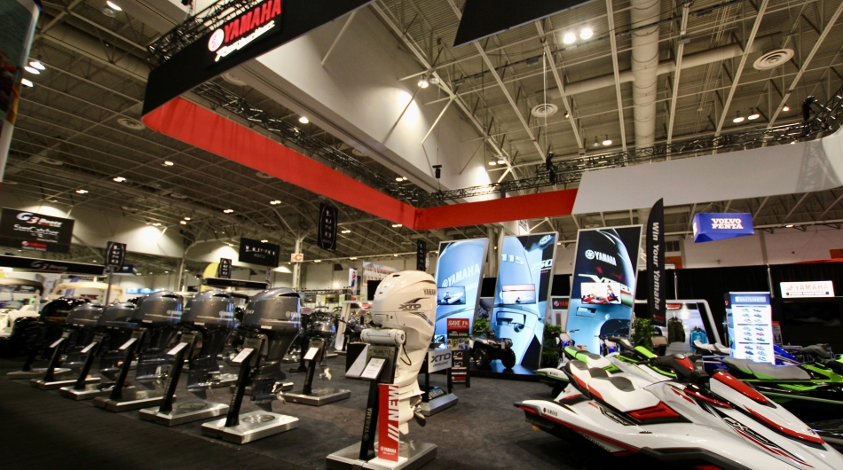 Fabricated through our Exhibit Connections division, this exhibit featured large visuals, huge overhead graphics, and lots of space allow this booth to harness the opportunity of attending this event annually in Toronto, Canada. Yamaha was spread across 3 spaces at the event for a total of 14,000 sq. ft. of exhibits for the spacious display of their products. Discreet meeting space in the back of the large corporate area allowed dealers and reps an opportunity to meet privately or unwind from a busy trade show day.